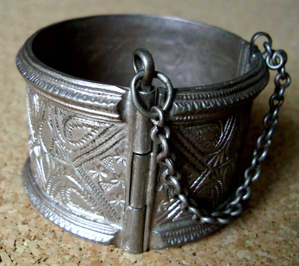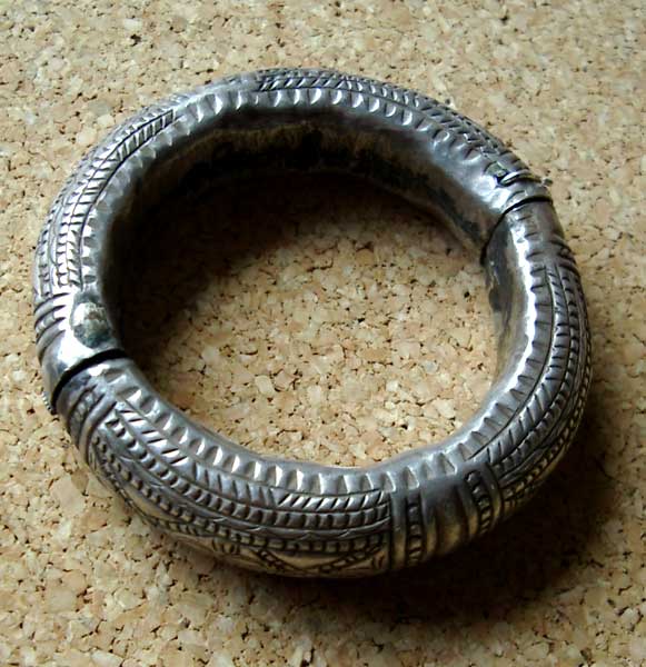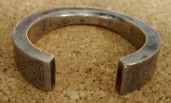 Akha -Tribe Armreif aus Laos Antik Silber aus Münzen gegossen Breitester Innendurchmesser 6,6 cm 52,5 Gramm 100.-