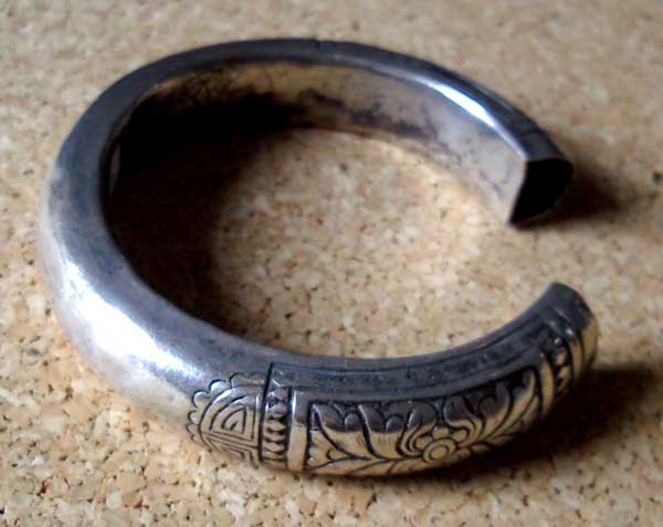 Wunderschöner Armreif aus Laos Antik Silber aus Münzen gegossen Breitester Innendruchmesser 5,1 cm 39 Gramm 75.-